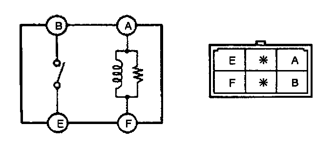 2. Inspect for continuity between the rear window defroster relay terminals by using an ohmmeter.