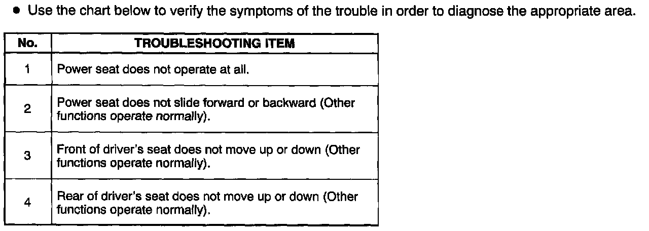 Troubleshooting Index (Power Seat):
