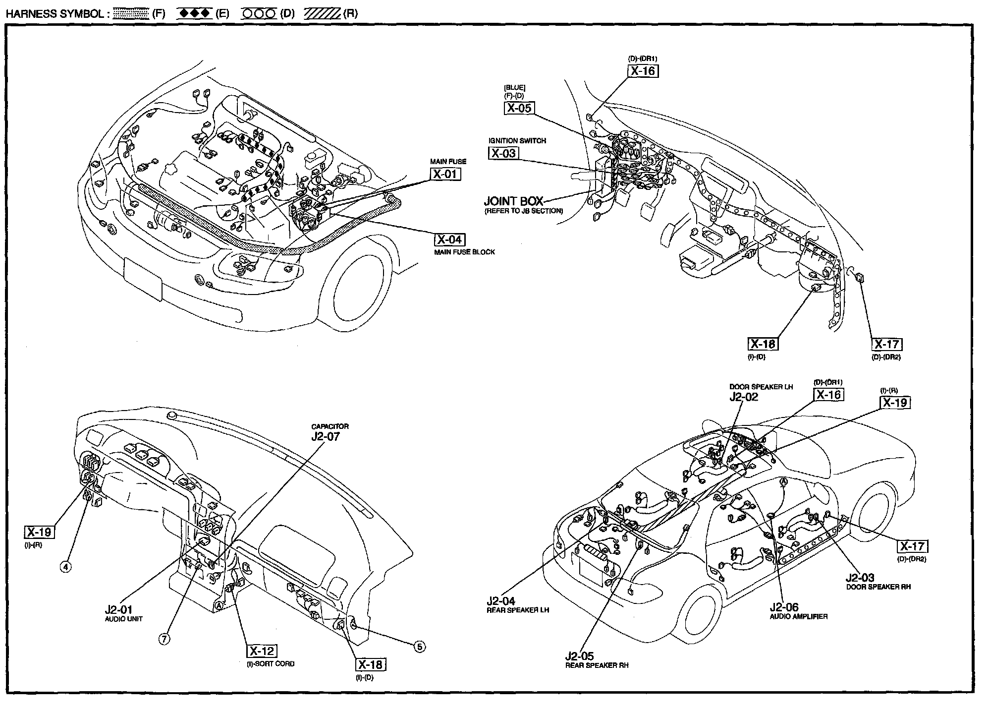 J-2 - Audio System (Bose Type) Harness/Connector Symbols: