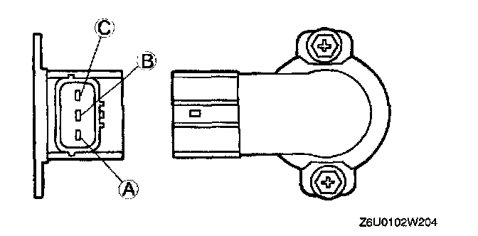 3. Using an ohmmeter, measure the resistance between throttle position sensor terminals A and C.