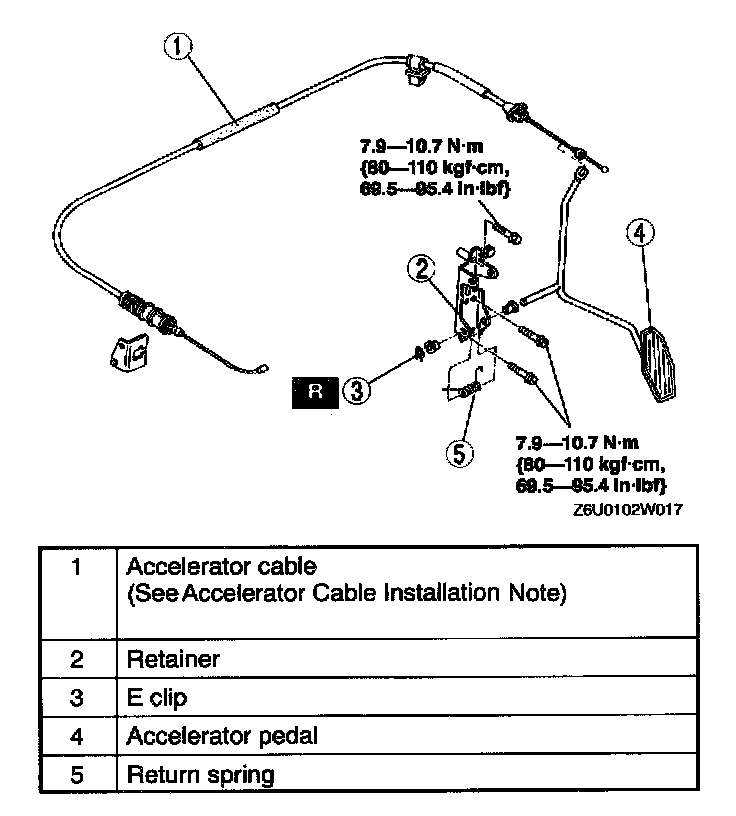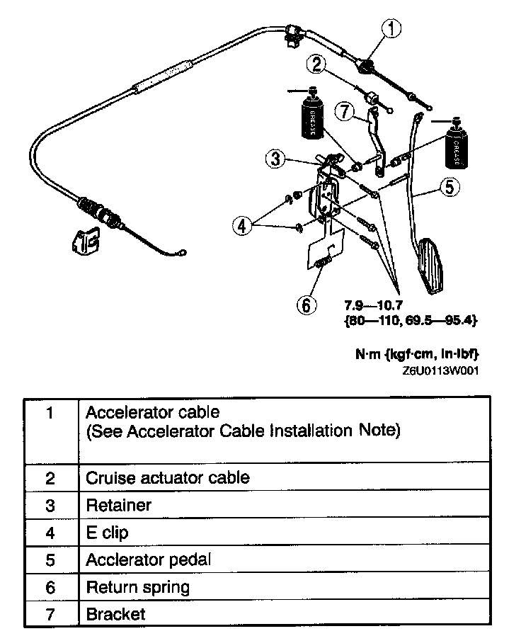 ACCELERATOR PEDAL REMOVAL/INSTALLATIONWithout Cruise Control