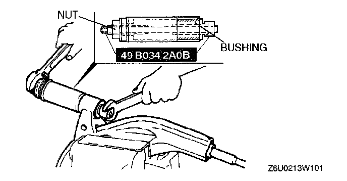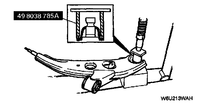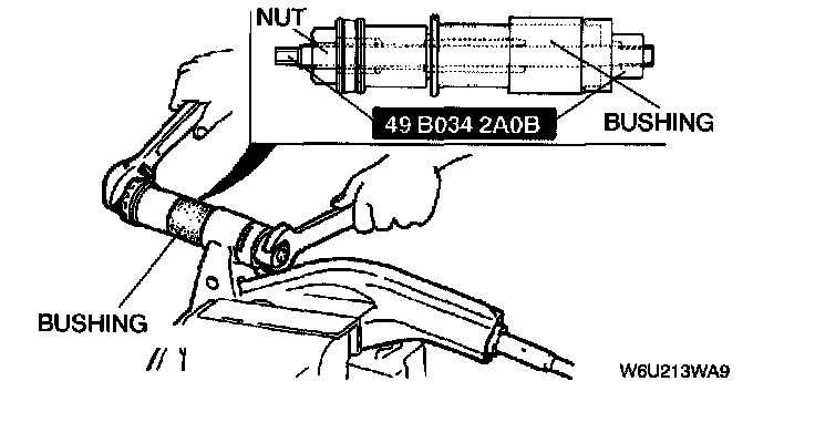 ^ Install the new bushing, and pull it into the lower arm using the SST.