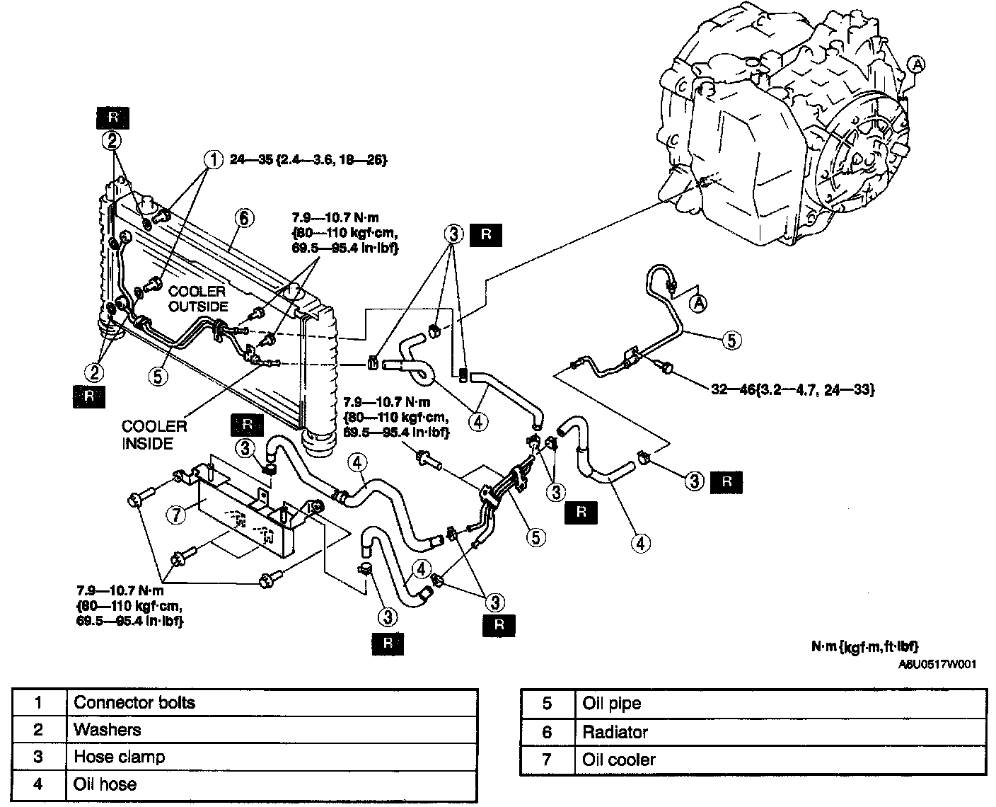 - In order to prevent ATF leakage, replace the hose. When any damages are found inside or outside of the hose, especially on areas contacting with pipes.