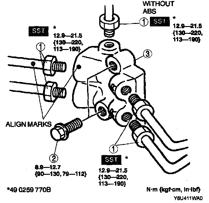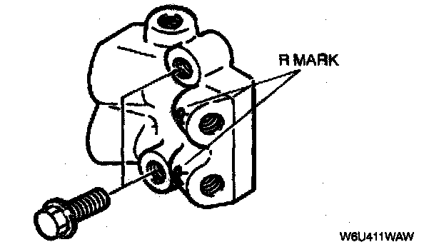 ^ Install the dual proportioning valve so that the R mark faces right side of the vehicle.