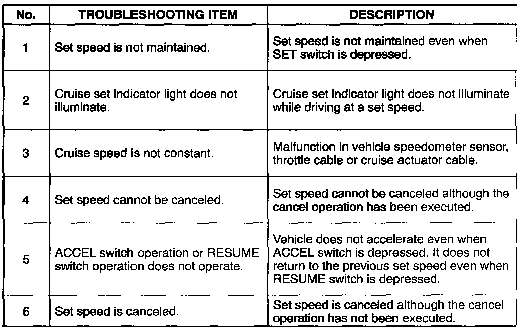Cruise Control Symptom Diagnosis Index