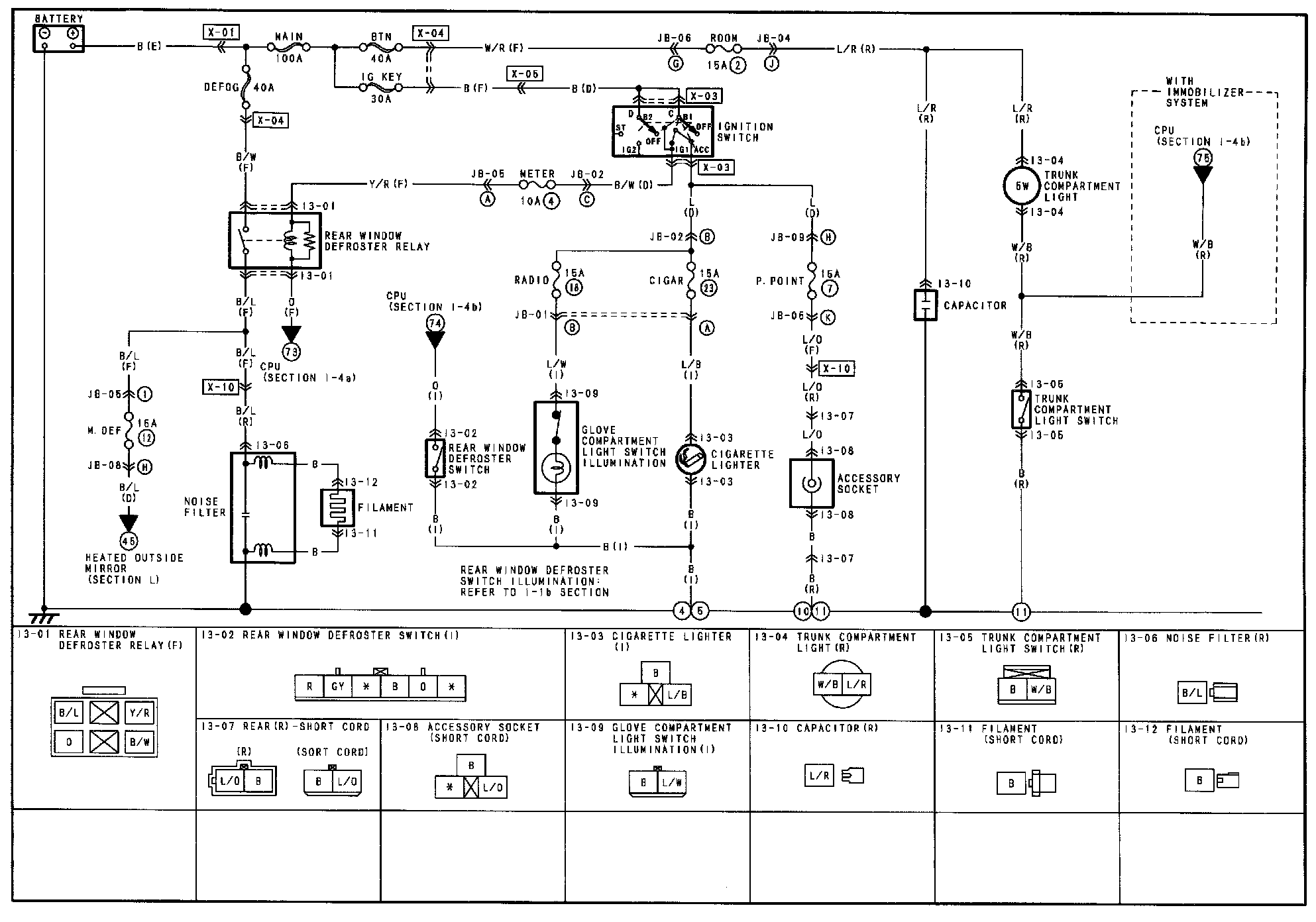 I-3 - Accessory Socket/Cigarette Lighter/Glove Compartment Light/Rear Window Defroster/Trunk Compartment Light Circuit: