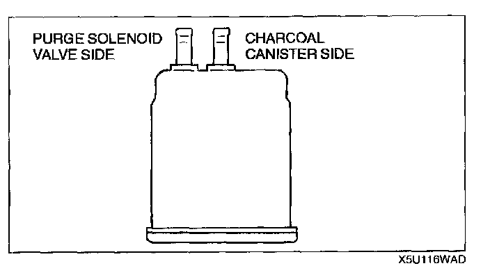 3. Blow from the charcoal canister side port and verify that there is no air leakage.