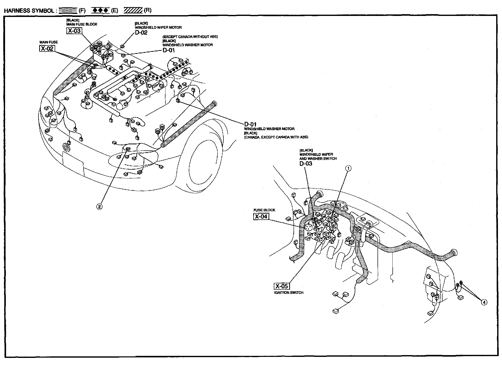 D - Windshield Wiper And Washer Harness / Connector Symbols: