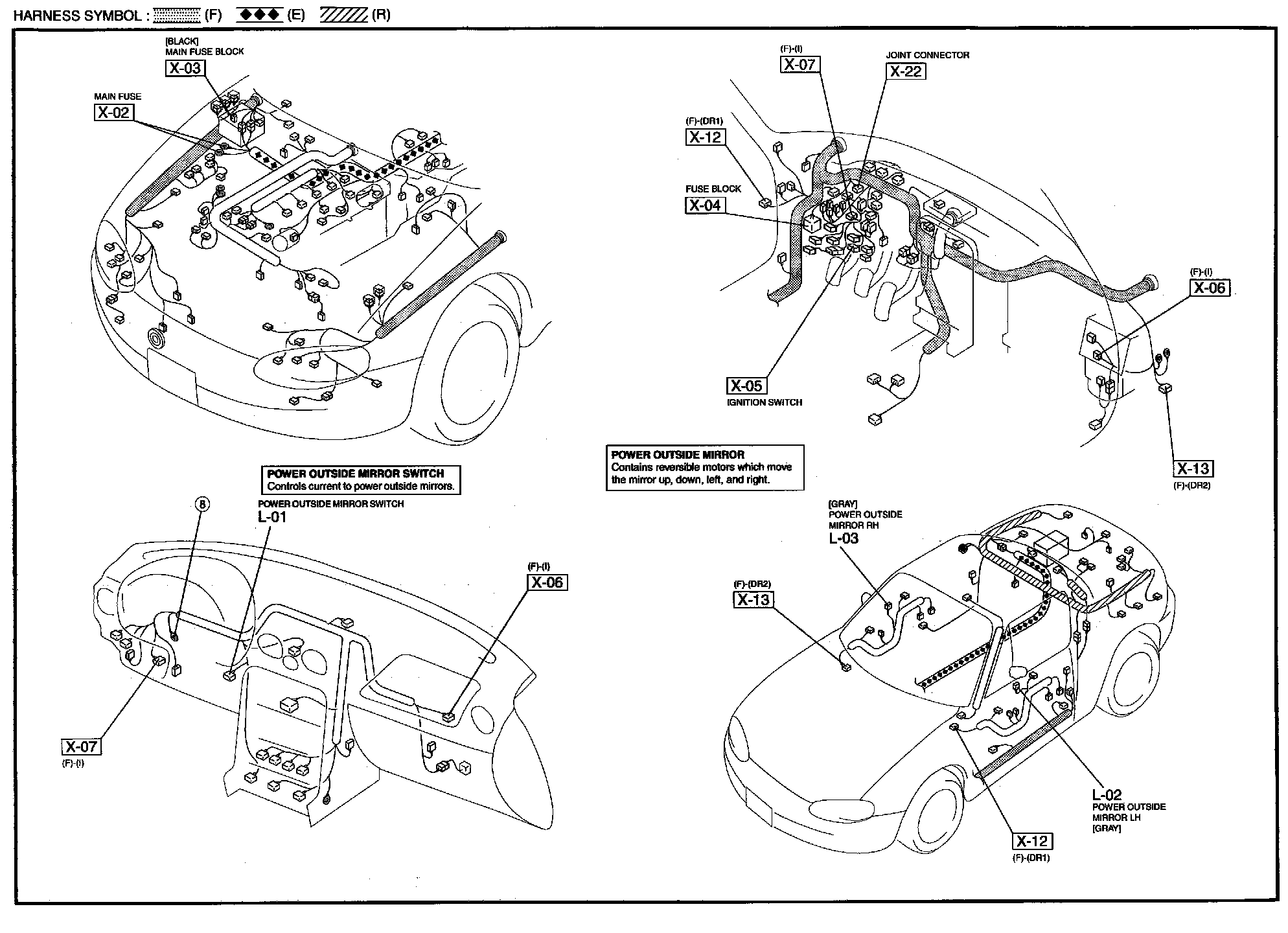 L - Power Outside Mirror Harness / Connector Symbols: