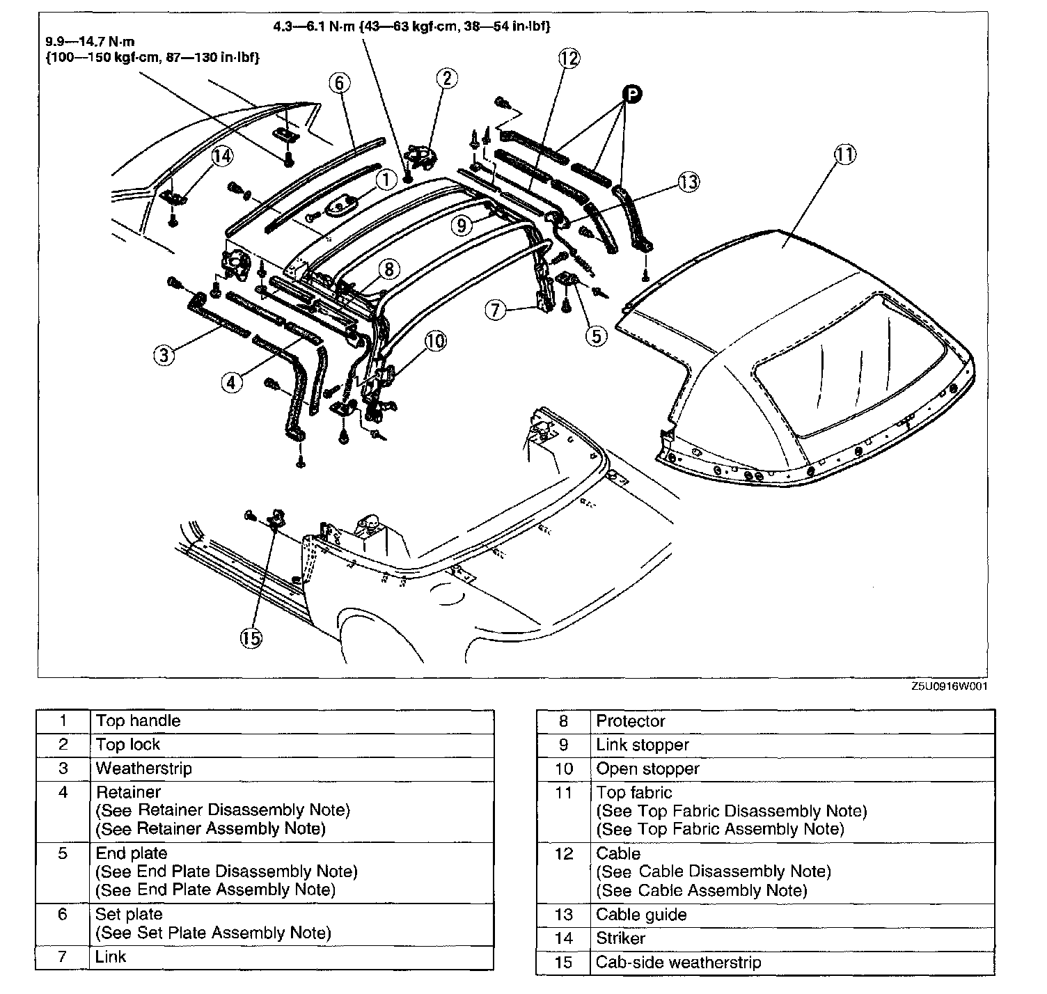 CONVERTIBLE TOP DISASSEMBLY/ASSEMBLY1. Disassemble in the order indicated in the table.
