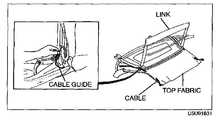 1. Set the convertible top upside down on a workbench covered with clean, thick cloth.