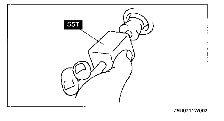 CAUTION: If the SST is pushed with excessive force, the clamp will deform. Be careful when pushing the SST into the clamp.