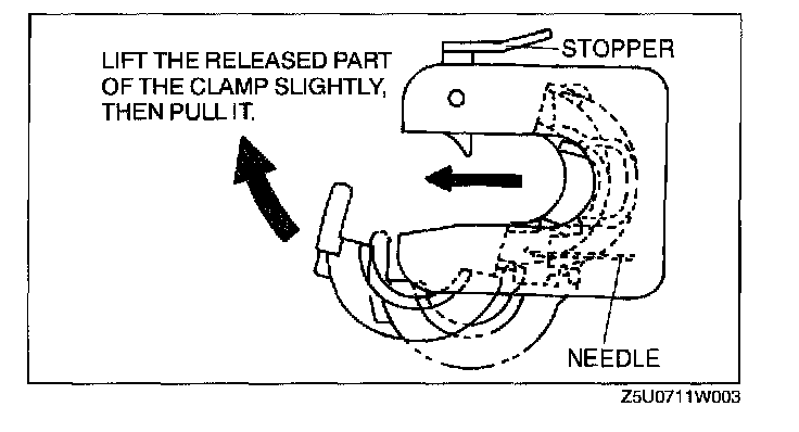 CAUTION: Be careful not to bend the SST needles when performing a clamp removal. If the needles are bent, the clamp can not be unlocked.
