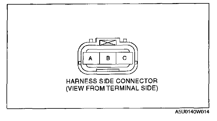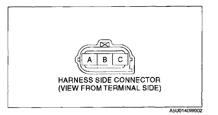 3. Verify there is no continuity between the TP sensor connector (vehicle side) terminal A and battery positive harness using an ohmmeter.