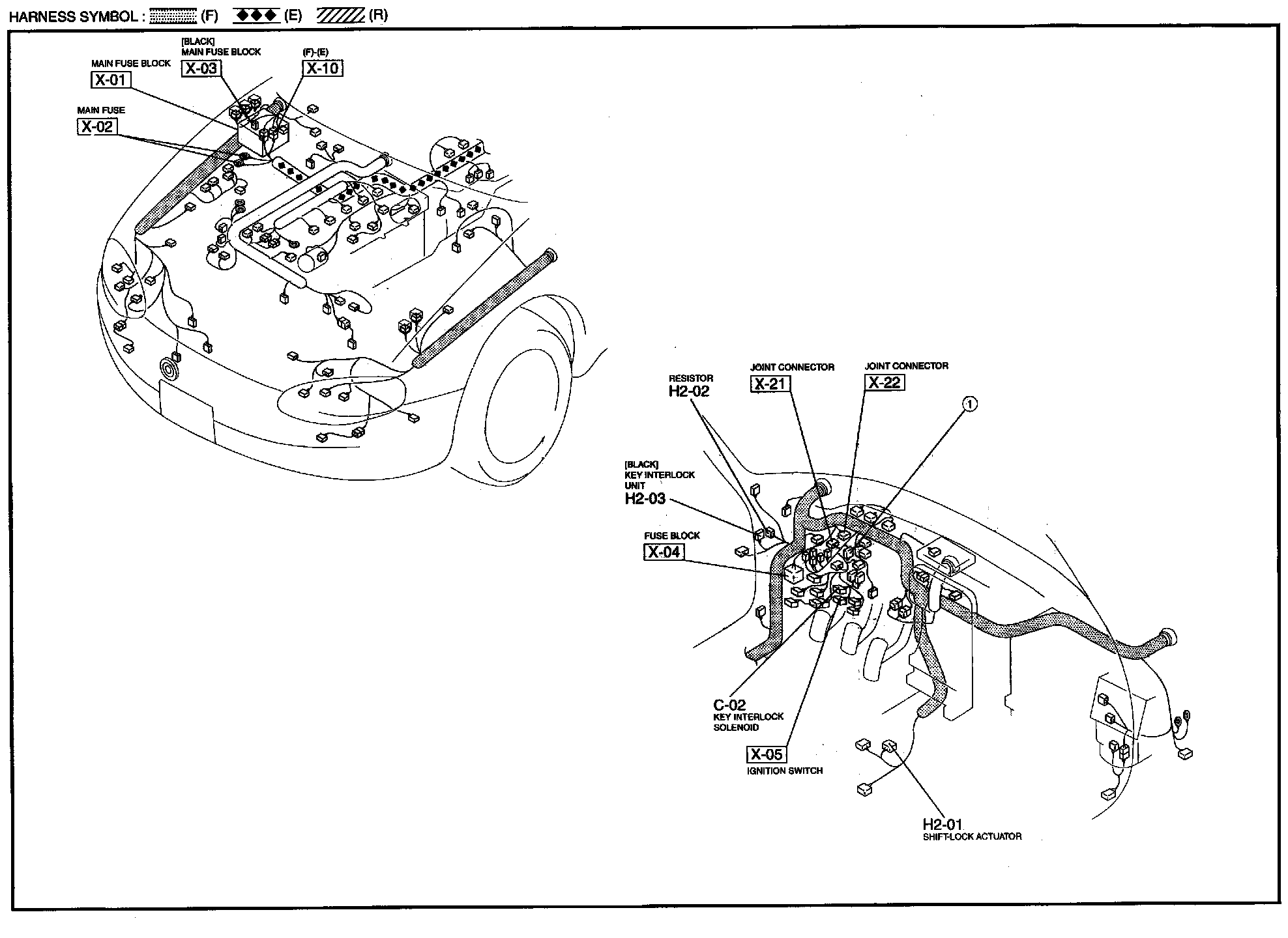 H-2 - Key Interlock System / Shift-Lock System Harness / Connector Symbols: