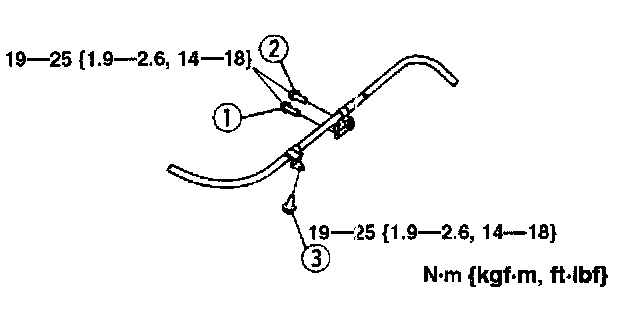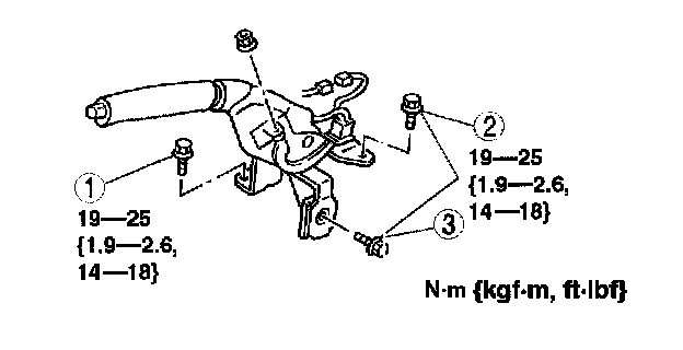1. Tighten the parking brake lever mounting bolts in the order shown in the figure.