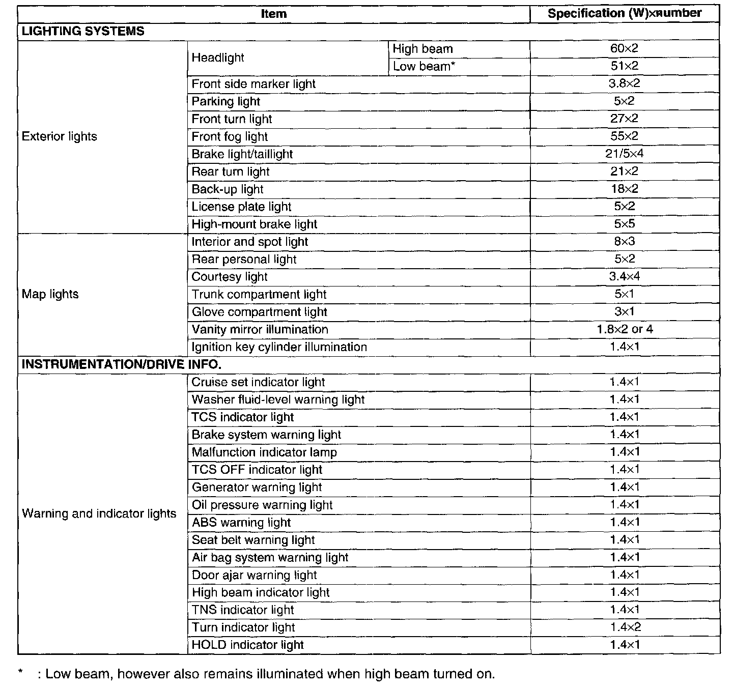 Instrument Panel, Gauges and Warning Indicators: Specifications