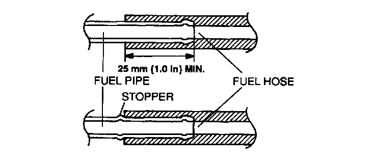 2. When installing the fuel hose onto the fuel pipe, tit the hose onto the pipe over 25 mm {1.0 in}.