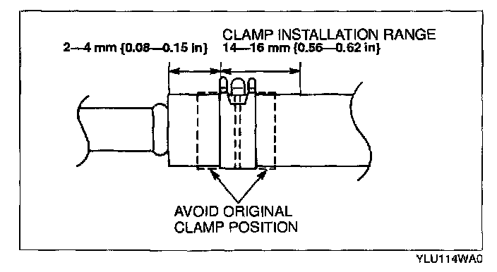 4. Install a hose clamp over the fuel hose within the clamp installation range as shown, avoiding the original clamp position.