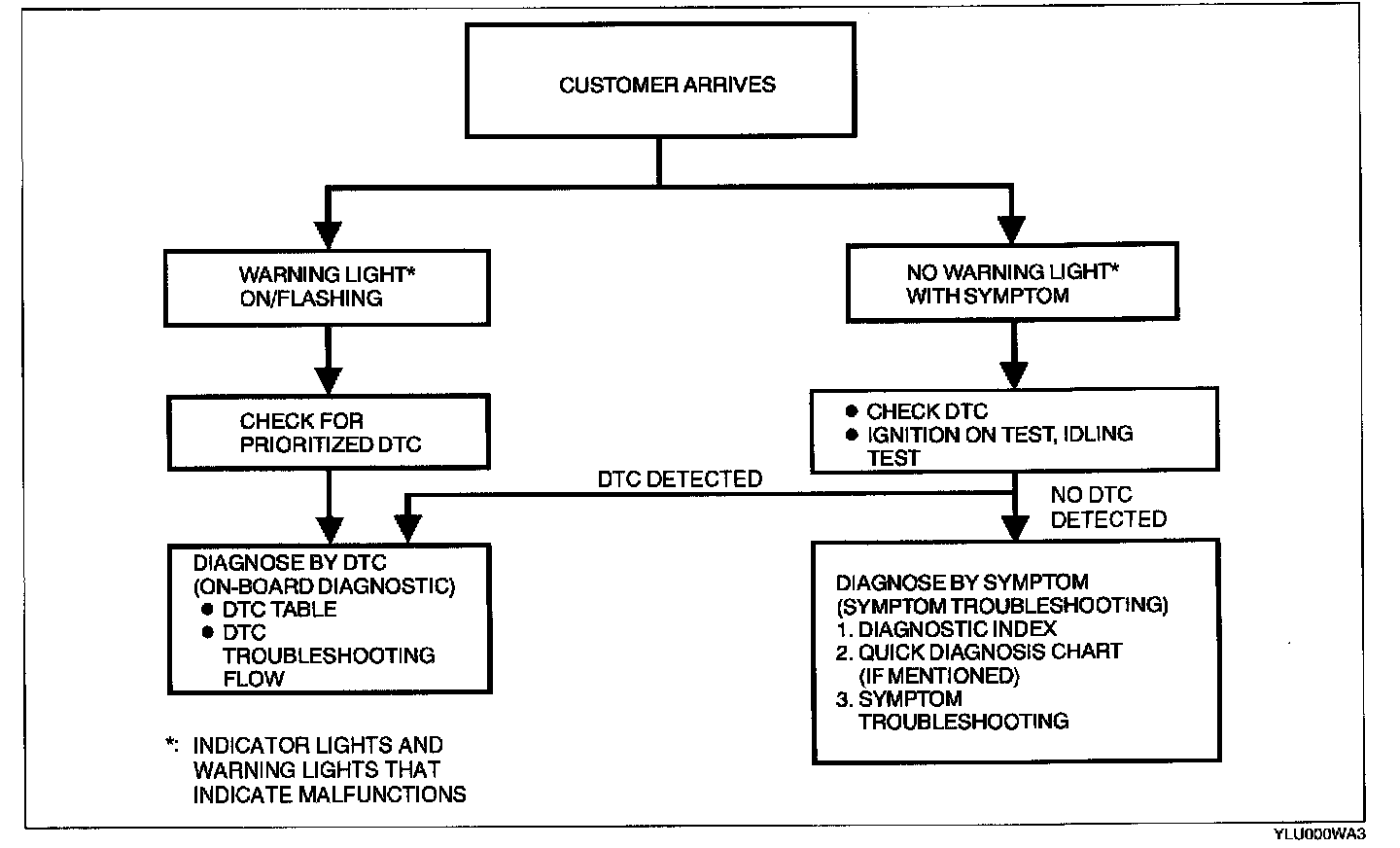 - The quick diagnosis chart lists diagnosis and inspection procedures to be performed specifically relating to the cause of the malfunction.