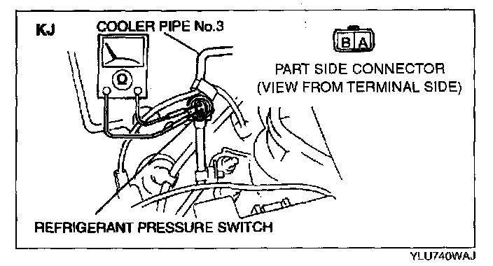 4. Inspect for continuity between the terminals of refrigerant pressure switch.