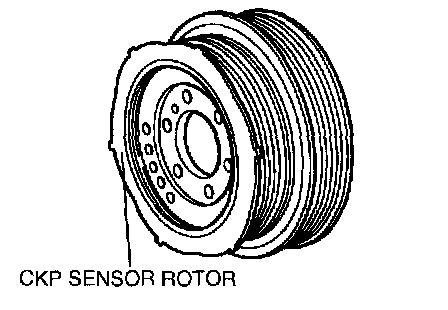 Caution: The CKP sensor rotor is on the rear of the crankshaft pulley, and can be damaged easily.