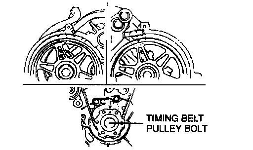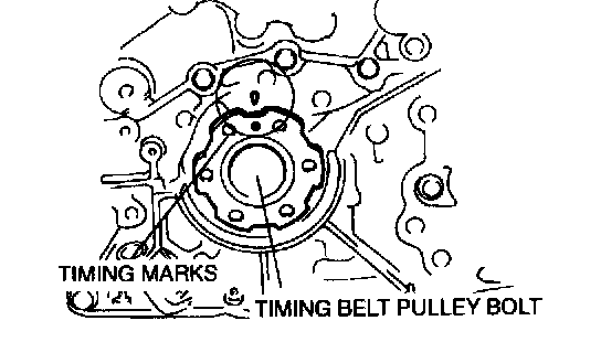 2. Using the timing belt pulley bolt, turn the crankshaft clockwise and align the timing marks.
