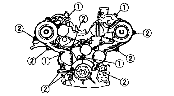2. Turn the crankshaft clockwise and align the all timing marks. (No. 1 piston is at TDC of the compression stroke.)