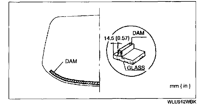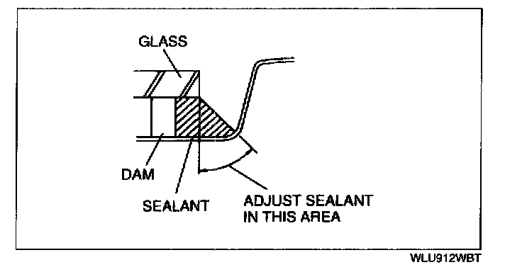 12. Apply an 11 mm {0.43 in} high bead of sealant around the entire circumference of the glass as shown. Keep the bead of sealant smooth and even, shaping it with a spatula where necessary.