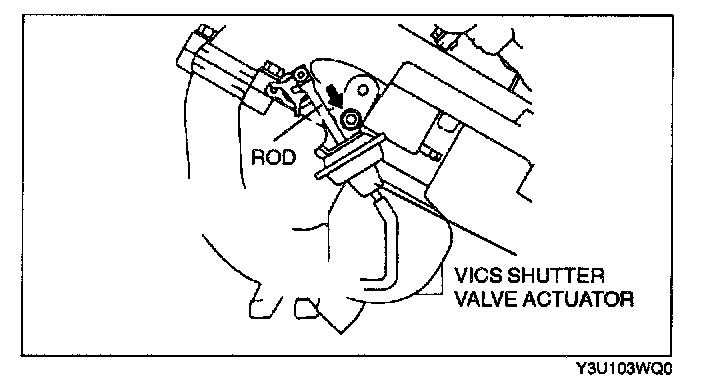 1. Start the engine.2. Verify that the rod of VICS shutter valve actuator is pulled.