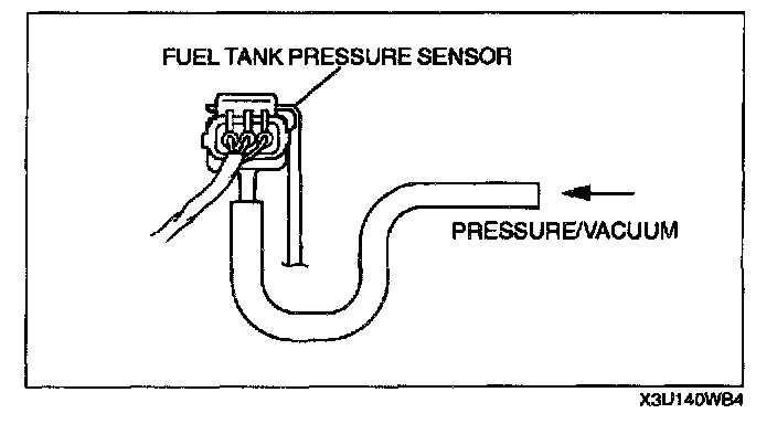 5. Apply pressure then a vacuum to the fuel tank pressure sensor according to the following procedure.