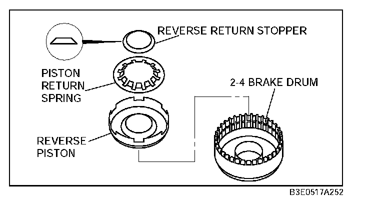 2) Install the piston return spring and reverse return stopper to the reverse piston.
