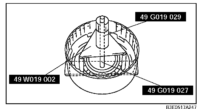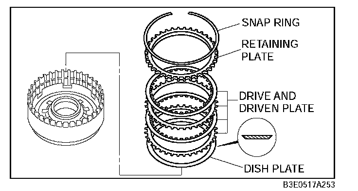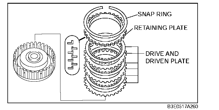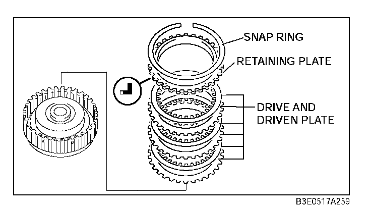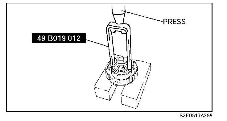 2) Secure the 3- 4 clutch by lightly pressing down with a press or similar tool.