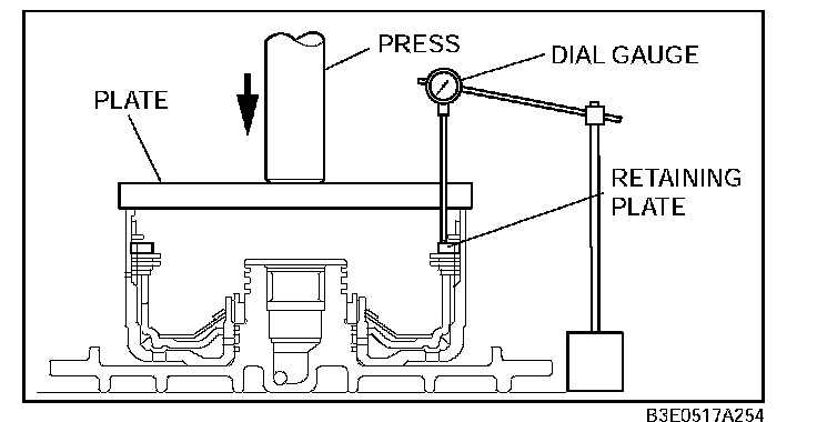 4) Apply compressed air and operate the 3- 4 clutch piston. Read the value when the indicator of the dial gauge stops.