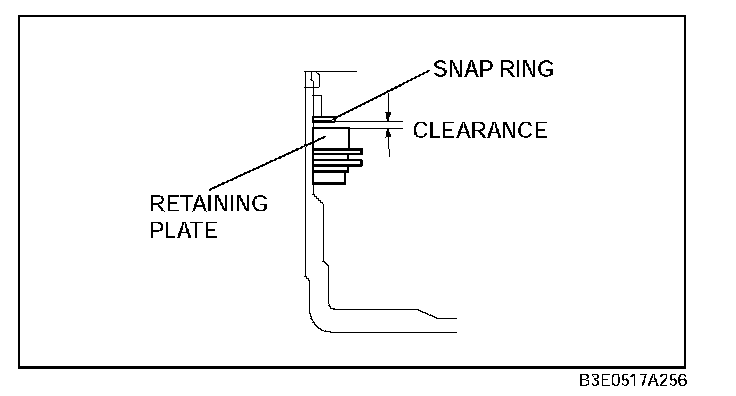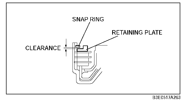 9) Install the selected snap ring and perform steps (2) to (7) again. Verify that the calculated value satisfies the clearance specification.