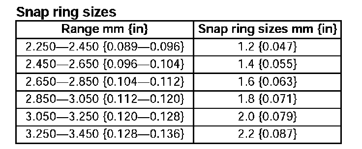 8) Add the thickness to the average value calculated in step (7), and select the snap ring whose range includes the value.