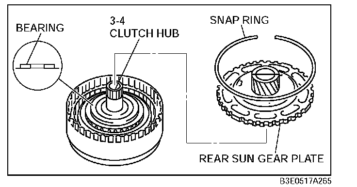 17. Apply petroleum jelly to the bearing, and secure it onto the 3- 4 clutch hub as shown in the figure.