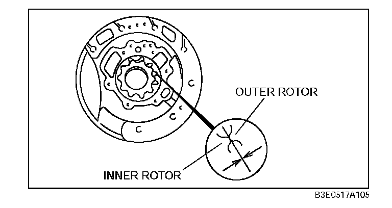3. Measure the clearance between the outer rotor and the inner rotor.
