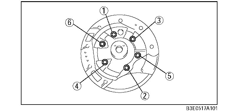 8. Tighten the bolts evenly and gradually in the order shown.