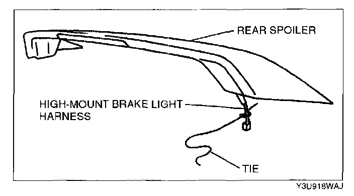 1. Tie a string to the end of the connector of the high-mount brake light beforehand so that the connector can be passed easily through the rear spoiler during installation.