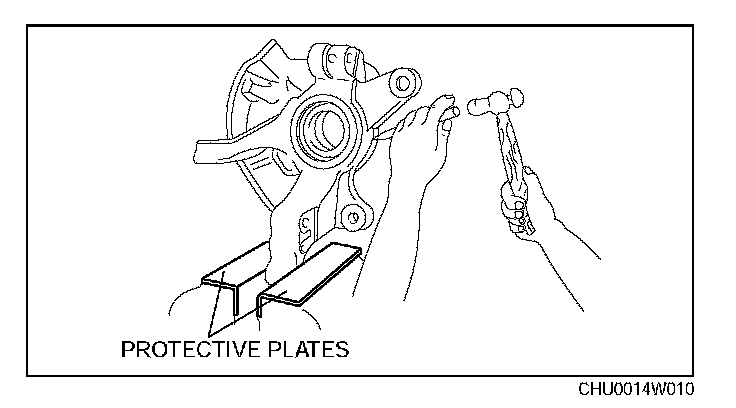 When using a vise, put protective plates in the jaws of the vise to prevent damage to parts.