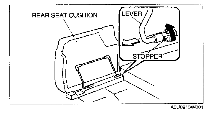 2. Pull the stopper to release the lever, and remove the rear seat cushion.