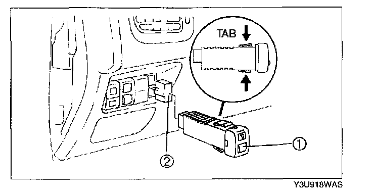 1. Insert your hand into the hole in the driver-side side panel, grasp the tabs of the panel light control switch and pull it forward to remove.