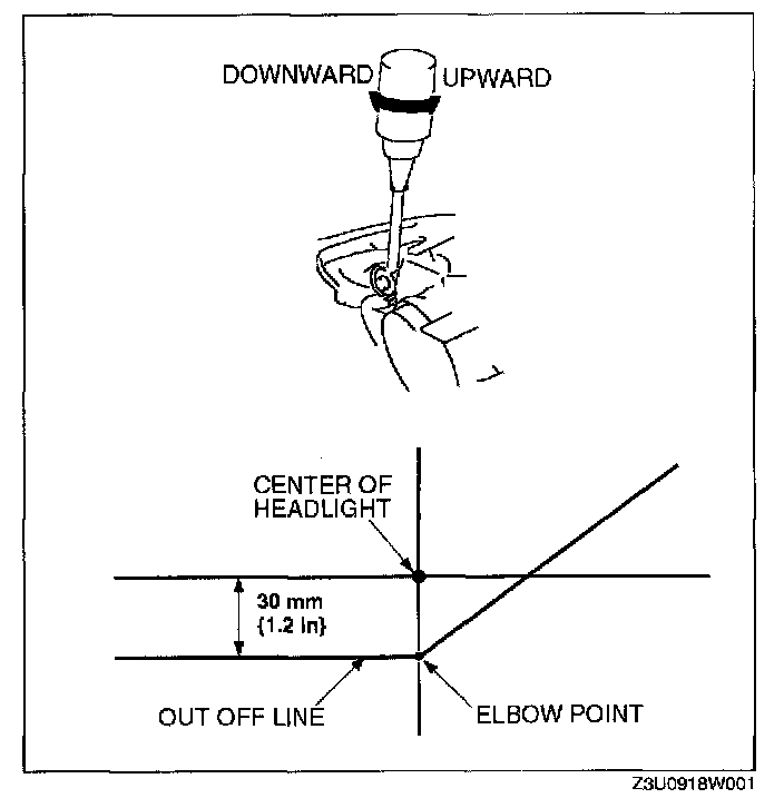 NOTE: If the adjusting screws are tightened first, then loosened, they will continue to loosen when the vehicle is in motion and may cause the headlights to become misaligned.