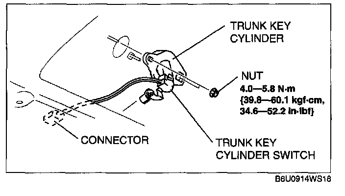 TRUNK KEY CYLINDER REMOVAL/INSTALLATION1. Disconnect the negative battery cable.