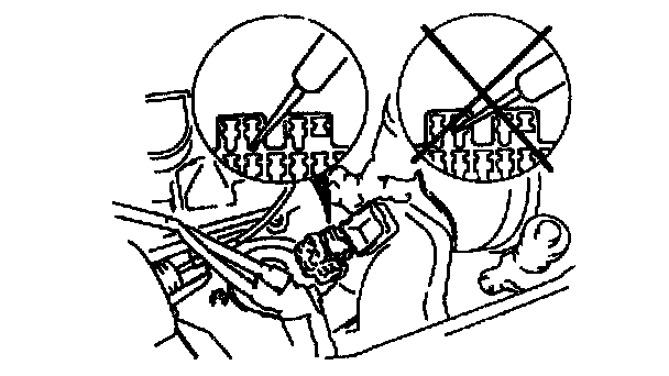 Caution: Inserting a jumper wire probe into the data link connector terminal may damage the terminal.