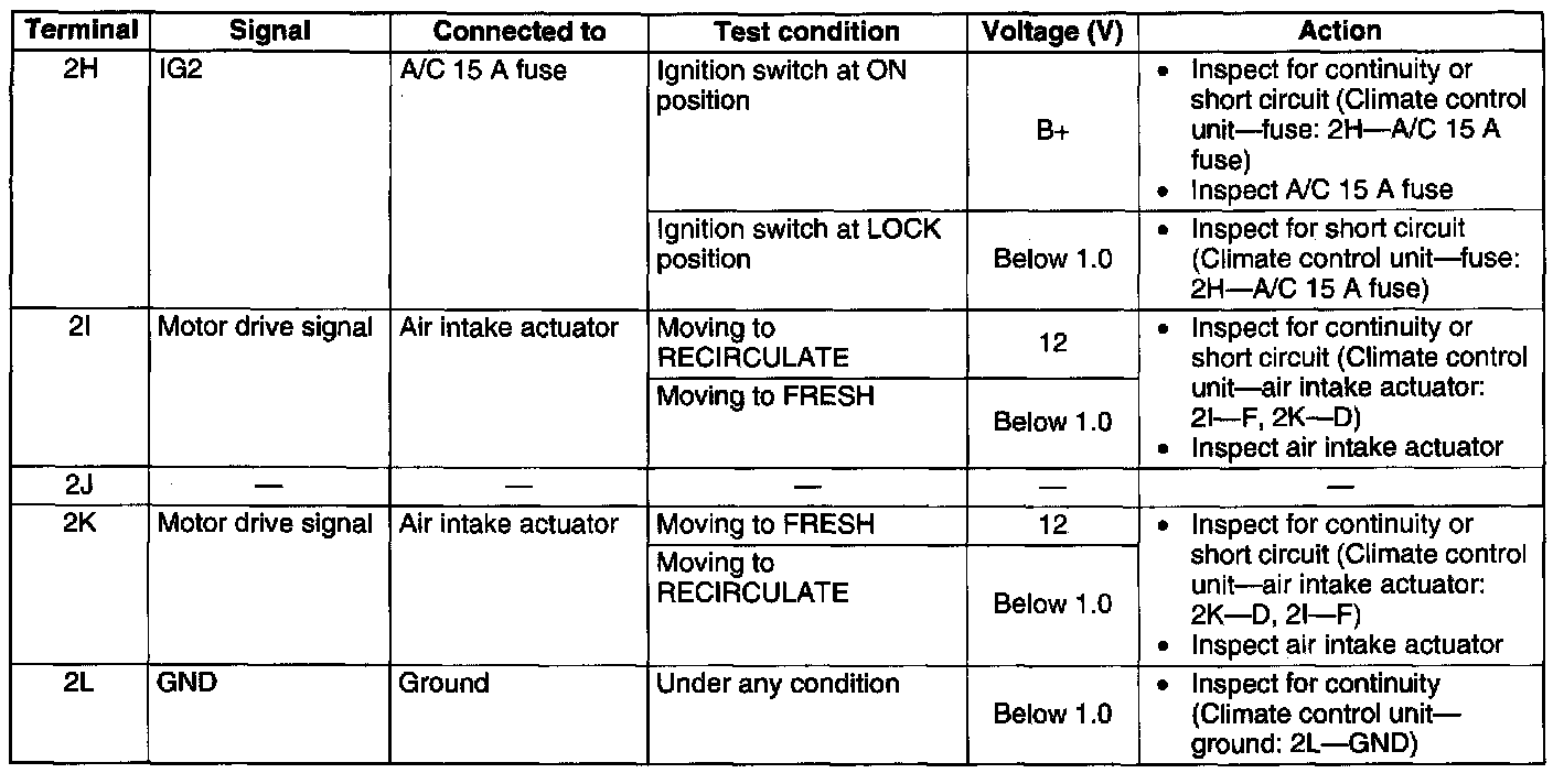 - If not as specified, replace the climate control unit.