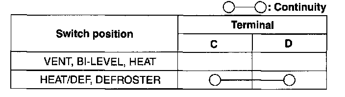 2. Inspect for continuity between the fan switch terminals using an ohmmeter.