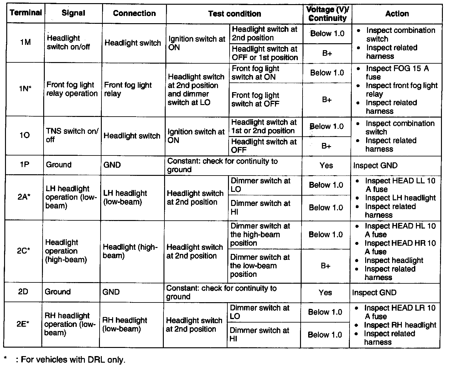 Terminal Voltage List (Reference) - (Terminal 1M - 2E):