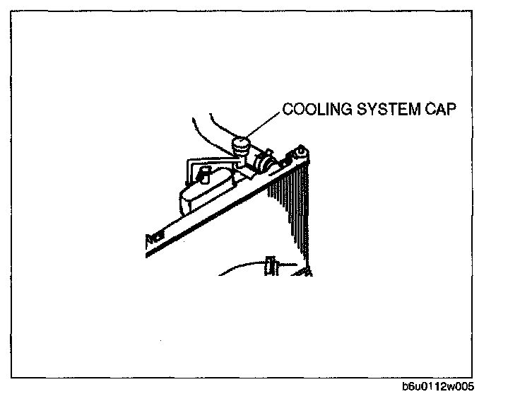 ^ Never remove the cooling system cap or loosen the radiator drain plug while the engine is running, or when the engine and radiator are hot. Scalding engine coolant and steam may shoot out and cause serious injury. It may also damage the engine and cooling system.